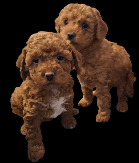 Het zijn kleine dwergpoedeltjes (mama Annie 33 cm en papa Joep 27 cm)